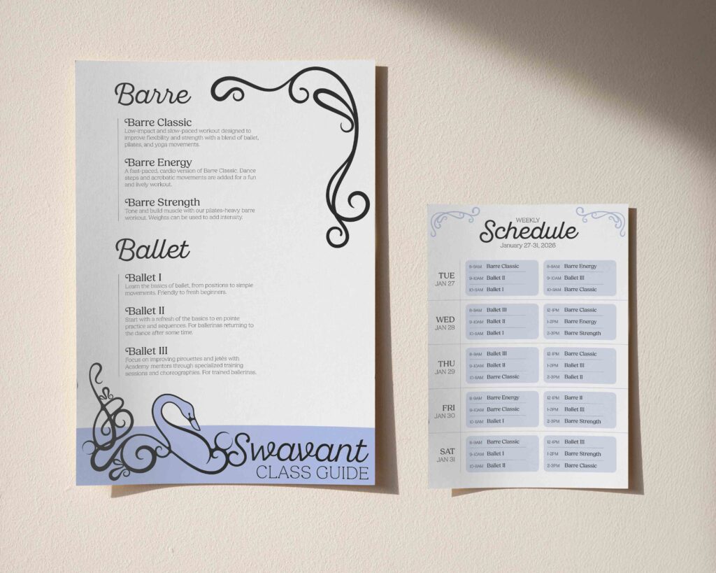 There are hundreds of workout spaces in Los Angeles, but Swavant Ballet + Barre stands out by creating a safe and inspiring space for women to exercise and socialize. The project grew from a logo combining a swan and ballet slipper into a woman-owned studio that focuses on experience and growth over perfection.